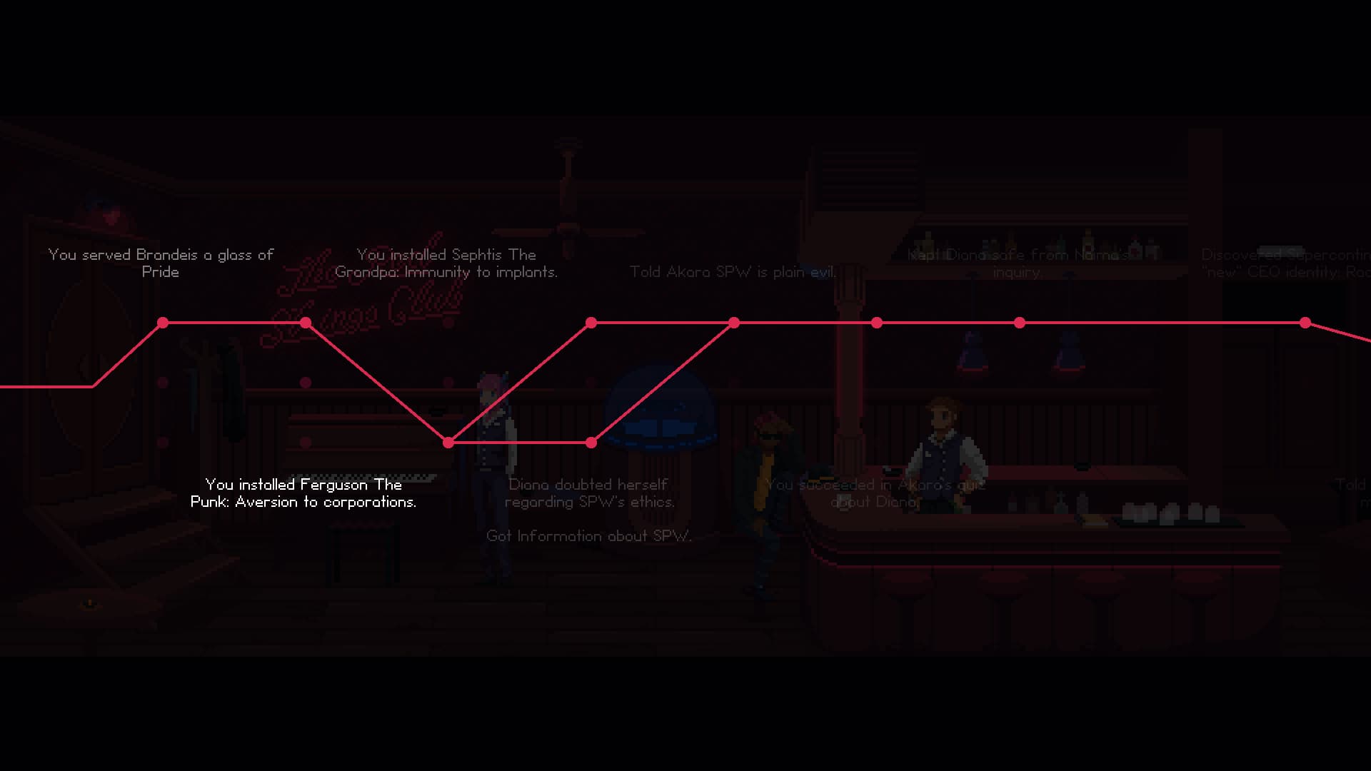 The Red Strings Club is a cyberpunk narrative experience about fate and happiness featuring the extensive use of pottery, bartending and impersonating people on the phone to take down a corporate conspiracy.