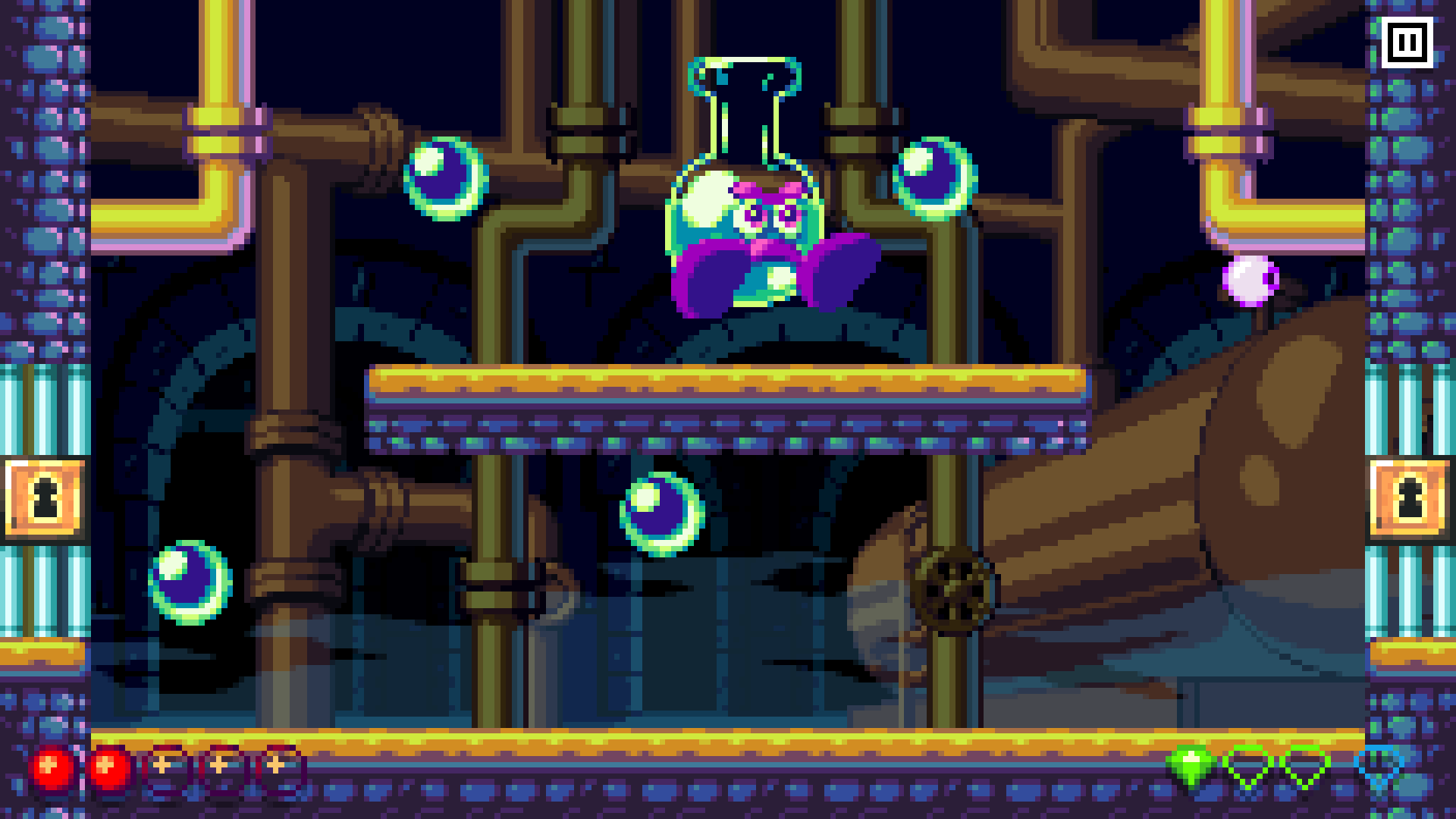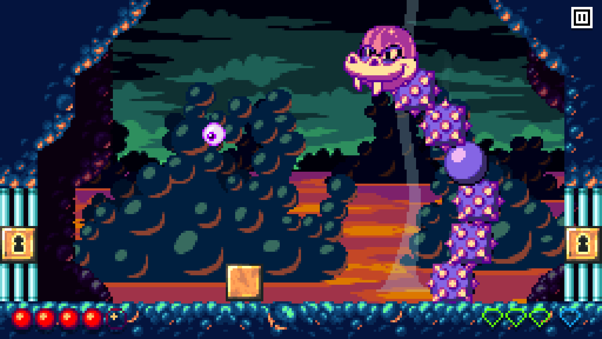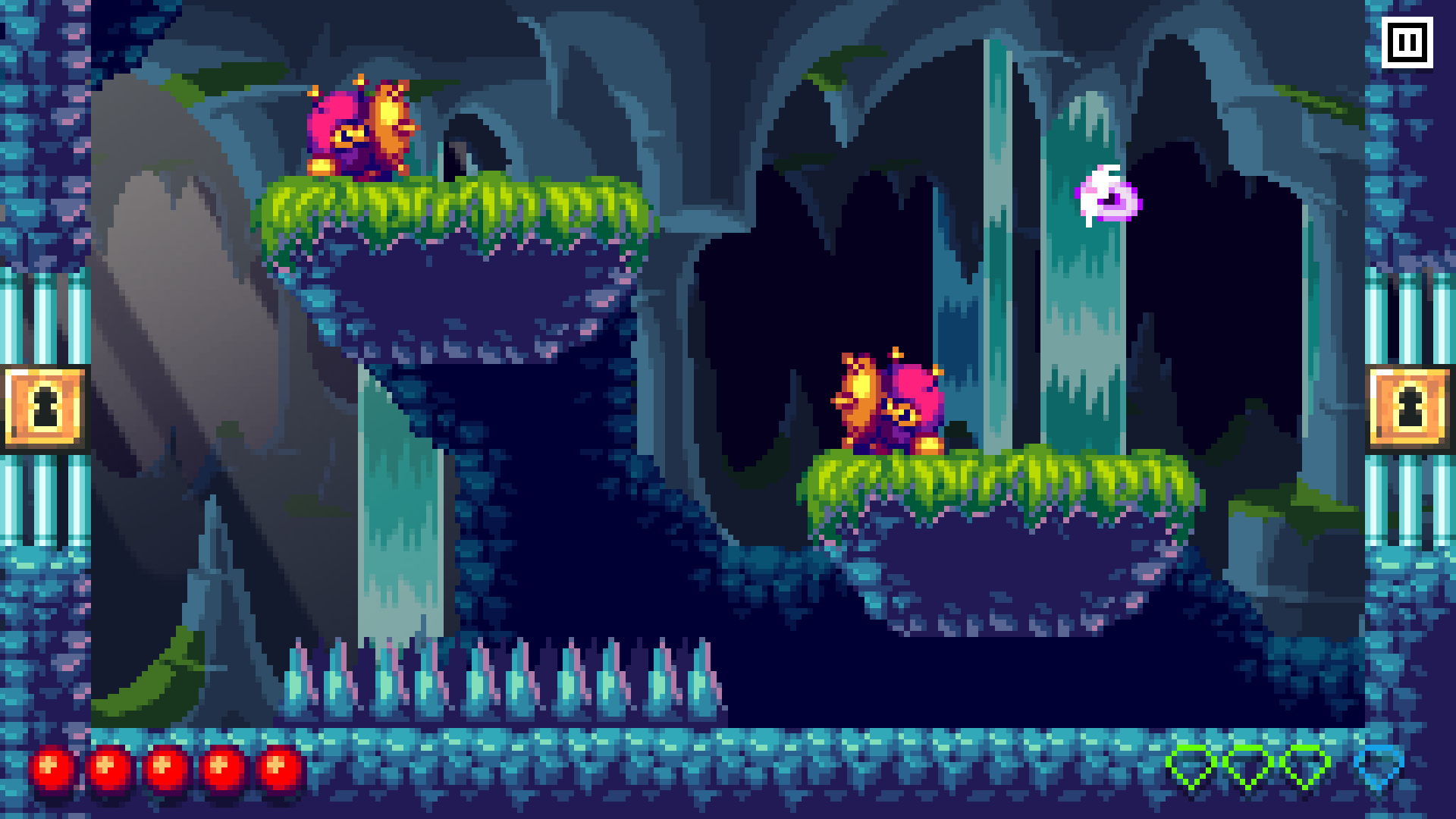 You'll guide her through 50+ levels, each containing something completely unique: tricky new enemies, mysterious new environments, and puzzling new secrets. These elements are brought to life with colorful, clean pixel art and a lively, head-bobbing original soundtrack.